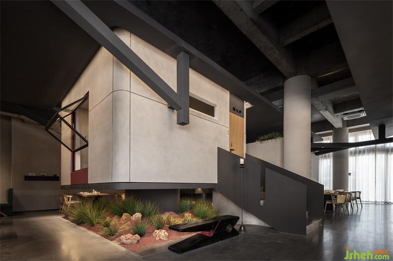 The aesthetic intention of wabi-sabi is to create a calm atmosphere, while the restaurant wants to present more of a city fireworks atmosphere, the space produces contrast and drama at the same time. The restaurant's cuisine takes "Cantonese hot pot" as the core, which resonates with people's inner emotions in the space and makes people immersed in it and even forget the passage of time. It emphasizes that silence does not deny the atmosphere of the market, but makes people feel the exuberant vitality in the lonely and empty realm.