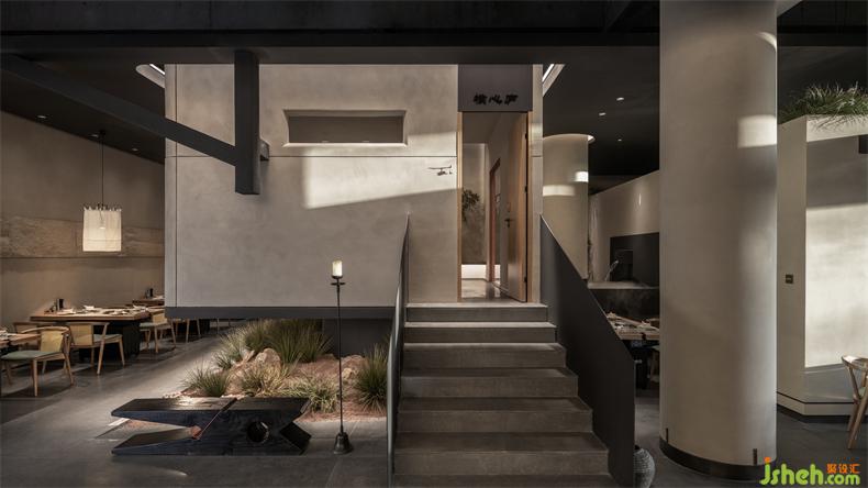 設(shè)計(jì)中將空間化零為整,打通室內(nèi)的邊界,火鍋店設(shè)計(jì)將內(nèi)空間設(shè)計(jì)漂浮,彼此架構(gòu),化身人與自然或宇宙之間更深層次的關(guān)系。為了在空間呈現(xiàn)“侘寂”中的陰翳之美,則在滿足照明需求的前提下,盡量降低了室內(nèi)光強(qiáng)度,在空間內(nèi)多運(yùn)用開(kāi)放界面和透明封閉界面,火鍋店設(shè)計(jì)將引入自然光作為主要照明方式,使自然光以投射、彌漫、消耗等多種方式自由傾灑在空間內(nèi)。