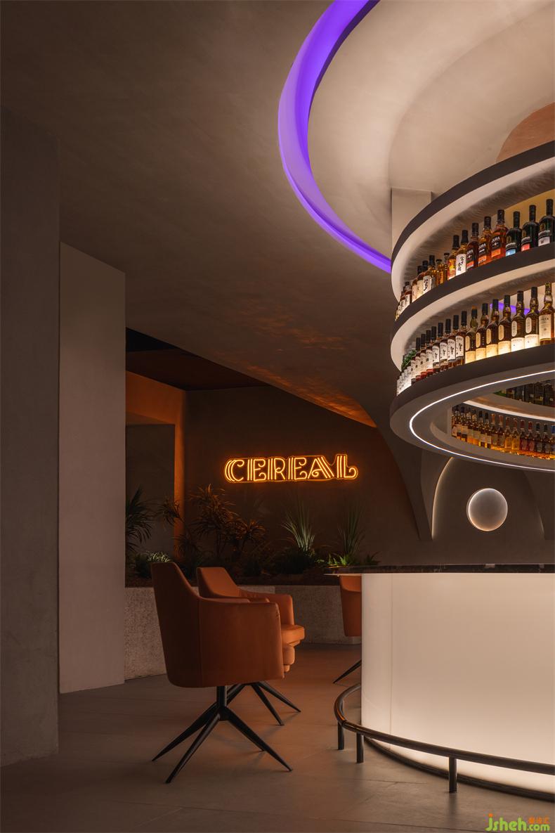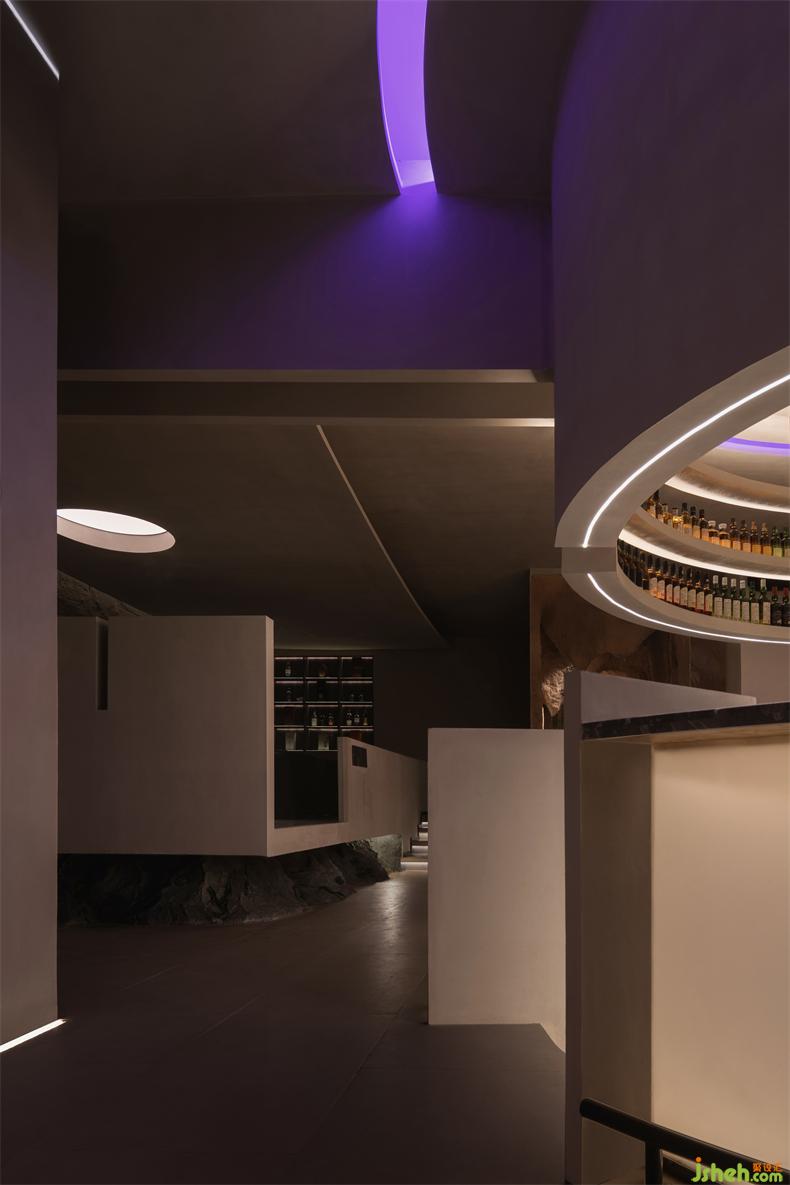 「虛擬」和「真實(shí)」之間的對(duì)比也體現(xiàn)在酒吧室內(nèi)和室外交叉點(diǎn)的設(shè)計(jì)中。景觀設(shè)計(jì)中常用的借景手法,通過(guò)處理周?chē)蜐B透之間的關(guān)系來(lái)實(shí)現(xiàn)空間的個(gè)性化效果。虛實(shí)融合不僅能滿足不同空間的不同功能需求,還能表達(dá)清晰的空間邏輯關(guān)系。