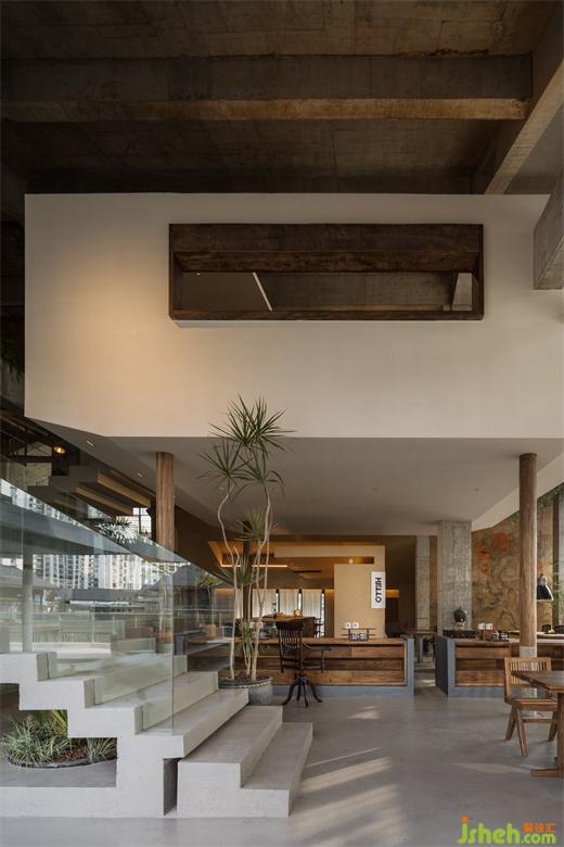 空間結(jié)構(gòu)呈現(xiàn)出了獨(dú)特的懸空盒子形態(tài),讓每一個(gè)空間都擁有了特殊的氛圍和功能,而嵌套的體量邏輯和路徑化的空間結(jié)構(gòu)則讓人們可以穿行于各個(gè)小空間之間。令人驚喜的布局和形態(tài)錯(cuò)位,餐廳設(shè)計(jì)使得每一個(gè)觀察者在空間中行走和觀察時(shí)都能不斷地發(fā)現(xiàn)新的景觀和視角,從而激發(fā)了他們的好奇心和探索欲。此外,錯(cuò)位的空間不對(duì)稱(chēng)性和變化尺度也增強(qiáng)了空間的活力和生命力,讓人們?cè)诳臻g中感受到一種動(dòng)態(tài)的氛圍。