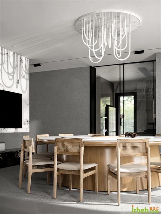 會所設計以平凡的材料構建不平凡的空間。整體空間大量運用素雅的天然白麻,客餐廳區(qū)沒有過多繁瑣造型,給人以平靜休憩之感。樓梯過道區(qū)造型張揚,但卻被麻石的屬性賦予空間一分含蓄,平易近人也不乏氣場。Build extraordinary space with ordinary materials. The overall space uses a large number of elegant natural white linen, and there is no too tedious shape in the dining room area, giving people a sense of calmness. The stairway the aisle area is full of shape, but it is given a subtlety space by the attributes of Mashi, and it is also easy to be in the field.