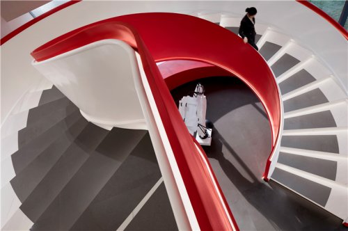 進(jìn)入設(shè)計(jì)的實(shí)質(zhì)階段,所遇最大障礙是空間太小,把所有功能全塞進(jìn)去,已無(wú)騰挪余地,若僅至此,則設(shè)計(jì)了無(wú)意趣,正膠著,突發(fā)靈感,用兒時(shí)的折紙游戲?qū)4紙又折、又疊又撕,但始終完整不斷,將橫向,縱向多個(gè)空間聯(lián)結(jié)一體,使人游走其間可交流,可互動(dòng),可停駐,可回望,仿佛一座立體的空中院落,通過(guò)對(duì)各空間功能性的消解,讓人可以輕松進(jìn)入一種放松和冥想的平靜狀態(tài),與事茗應(yīng)該是一種最理想的境界吧。