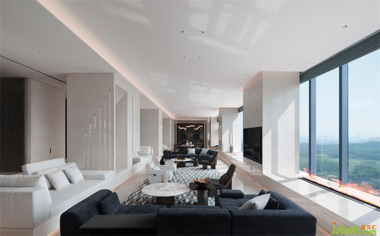 二十多米長(zhǎng)的超級(jí)會(huì)客廳被設(shè)計(jì)成階梯下沉的結(jié)構(gòu),配合同樣尺度的全景玻璃幕墻窗,別墅裝飾以俯瞰的姿態(tài)觀山閱瀾,我想在閱盡人生之后還能回歸本心是一種境界。