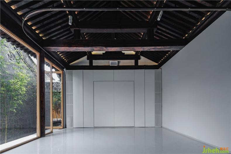 小院兒的使用主要作為城市公共活動空間,同時也保留了居住的可能性。別墅裝飾四間房屋可被隨時租用來進行休閑、會談、聚會等公共活動;同時也可以做為帶有三間臥室的家庭旅舍。別墅裝飾整合式家具用來滿足空間場景的這種彈性切換。東西廂房在原有木框架下嵌入了家具盒子。木質(zhì)地臺暗藏升降桌面,既可作為茶室空間,別墅裝飾也可以作為臥室來使用。北側(cè)正房也設(shè)有翻床家具墻體和分隔軟簾,同樣可以滿足這種多用需求。