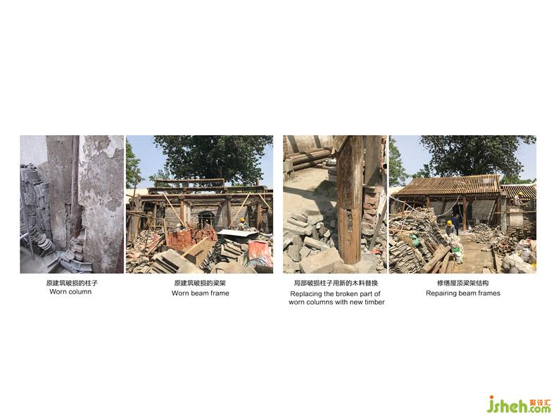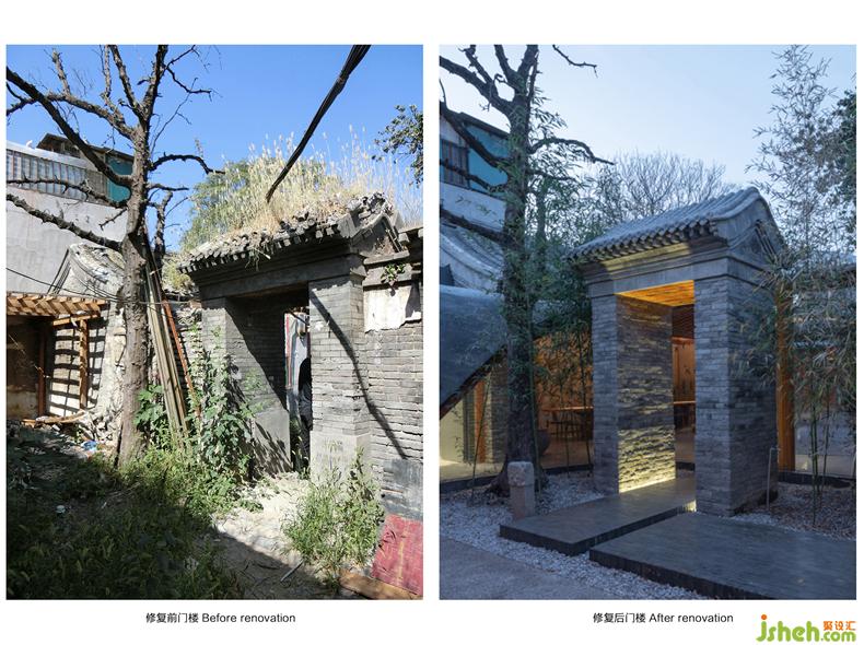 七舍合院位于北京舊城核心區(qū)內(nèi),院子占地寬約15米,長(zhǎng)約42米,是一座小型的三進(jìn)四合院。別墅裝飾由于原建筑共包含七間坡屋頂房屋,且正好是該胡同的七號(hào),故得名七舍。原始建筑年代較為久遠(yuǎn),別墅裝飾除了基本上還保持的木結(jié)構(gòu)梁柱和局部有民國(guó)特點(diǎn)的拱形門(mén)洞,其它大部分屋頂、墻面、門(mén)窗等都已經(jīng)破損或消失。院內(nèi)遺留了大量大雜院時(shí)期的臨時(shí)建筑,遍布清空之后的建筑廢料,雜草叢生、一片凋零。因此,本次改造設(shè)計(jì)一方面是修復(fù)舊的——對(duì)院落房屋進(jìn)行整理,保留時(shí)間迭代的印記,別墅裝飾修復(fù)各個(gè)建筑界面,加固建筑結(jié)構(gòu),重現(xiàn)傳統(tǒng)建筑的樣貌;另一方面是植入新的——新的生活功能配備(衛(wèi)生間、廚房、車(chē)庫(kù)等),新的基礎(chǔ)設(shè)施(水暖電設(shè)備管線)以及新的游廊空間。新與舊相互疊合成為一個(gè)新的整體,來(lái)滿(mǎn)足未來(lái)院子作為公共接待和居住空間的使用要求。