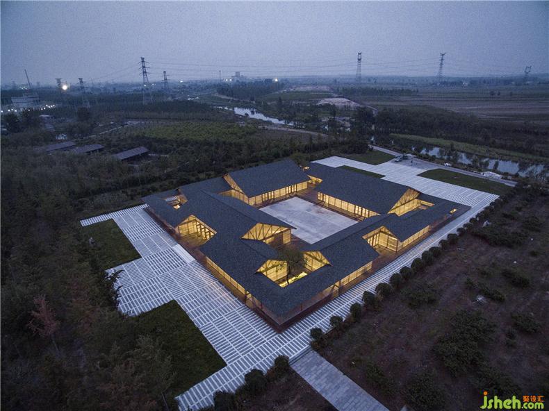 整體建筑由四個相對獨立的房屋圍合而成,裝修設(shè)計分別是原料庫、磨坊、榨油坊、包裝區(qū)。內(nèi)庭院作為糧食的曬場,圍繞內(nèi)庭院形成便捷的工作循環(huán)流線。建筑的邊界是聯(lián)通四個分區(qū)的外部游廊,這是參觀糧食作坊的流線。中心庭院向建筑四周錯落延伸,拓撲組合成為多層次的庭院空間,滿足廠房的自然通風(fēng)、采光及景觀需求,裝修設(shè)計保持良好的室內(nèi)外空間品質(zhì)。院與房的有機聯(lián)系使得建筑在一個完整的大屋頂下產(chǎn)生多種跨度的使用空間:小尺度的游廊、中等尺度的房間、大尺度的廠房,裝修設(shè)計可以彈性的適應(yīng)加工作坊的復(fù)合使用要求。