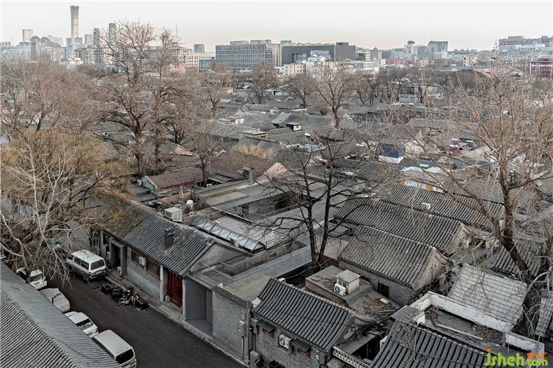 項目位于北京東城區(qū)錢糧胡同一片院落之間,占地面積約410平方米。別墅裝飾原有建筑并不是四合院常見的坡頂建筑,而是幾個相互分離的磚混平頂房。平頂房應(yīng)該是四合院某一時期被改建的結(jié)果,別墅裝飾在舊城之中也有不少這樣的房子。場地分前后兩個部分,前部是一塊空地,包含兩個磚房和一棵老樹;后部是一個U形建筑體,玻璃屋頂蓋住了內(nèi)院。別墅裝飾舊建筑結(jié)構(gòu)老化,房間狹小封閉,缺少基礎(chǔ)設(shè)施,已經(jīng)無法滿足當(dāng)代生活的使用,需要徹底改造。改造之后的建筑將出租給潛在的客戶,別墅裝飾需要滿足可辦公、可聚會、可居住的彈性使用。因此,本次改造的主要挑戰(zhàn)是:如何基于現(xiàn)存條件做恰當(dāng)?shù)牟鸶模黾咏ㄖ臻g的活力,回應(yīng)不確定的功能。