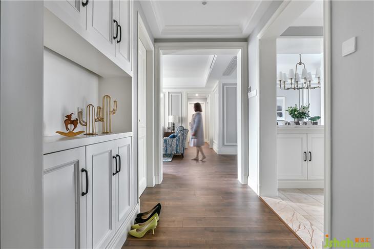 設計定位為現代美式風格,整體設計遵循簡潔、硬朗、淡雅、沉穩(wěn)兼跳躍、活潑的主基調,采取中灰度弱對比的搭配,選材都強調突出亞光質感和原木品質。平面布局略做調整,創(chuàng)造出一開門即大開間的通透視野,滿足了入戶左邊的內嵌鞋柜。把廚房小陽臺包進中廚加長操作臺,進而解放了入戶右邊區(qū)域,增加了水吧區(qū)和陳列柜,滿足了日常最頻繁的燒水喝水以及儲放杯子茶葉。餐廳區(qū)域增加了兩邊陳列柜,也是為存放食材而準備。取消一間臥室,將其與主臥連通形成主臥套內衣帽間。全房地面均為進口品牌強化復合地板,客廳墻面為木飾面結合PU線條飾白漆搭配進口品牌有色乳膠漆,其它房間墻面均為進口品牌有色乳膠漆,搭配不同顏色的木器漆的實木柜體或原木家具。任何裝飾都不讓生活加重,所有設計都能給生活減負,一切所見都是如此日常又平常,不多也不少。
