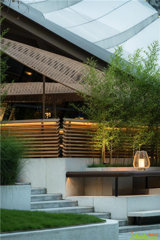 在將所有外景最大化借入的前提下,自由與圍合式的布局形態(tài)填滿建筑內(nèi)部,用以滿足商業(yè)指標(biāo)的嚴(yán)格規(guī)則。火鍋店設(shè)計(jì)重點(diǎn)的入口與外擺區(qū)域,以及和建筑的關(guān)系,強(qiáng)調(diào)了漫步、過(guò)渡、治園的情緒設(shè)計(jì)。