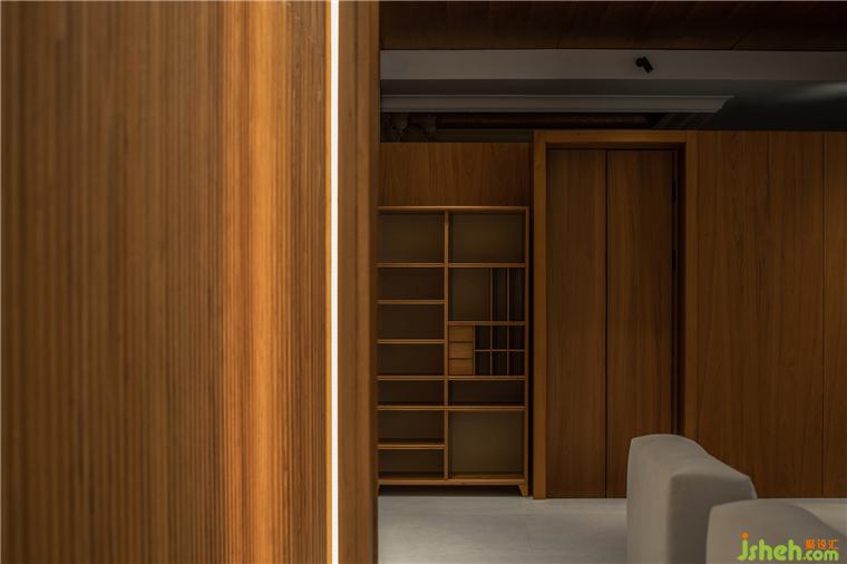 在與人交往的區(qū)域,是設計師最費心的地方,稍不留意,將會導致空間節(jié)奏變得混亂。展廳設計師經(jīng)過仔細思慮和空間配比并與品牌方進行充分溝通后,在產(chǎn)品展示區(qū)域的結(jié)尾處,用通透柜體結(jié)構(gòu)作為空間的段落語句,這樣,區(qū)隔變得柔性和相互可以穿插,并用不同照度的光線塑形,使進一步交往因此變得自然。