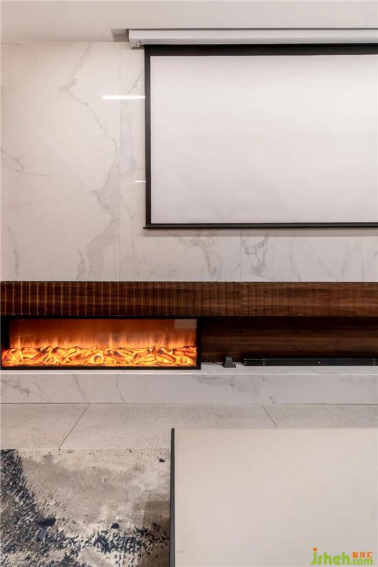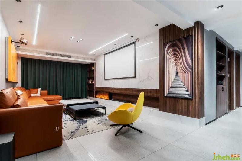 本案的服務(wù)模式為全案設(shè)計(jì),設(shè)計(jì)者在體現(xiàn)現(xiàn)代極簡風(fēng)格以外,呈現(xiàn)更多的是圍繞家庭成員的空間秩序與表達(dá)。家庭空間設(shè)計(jì)至始,都是一種不失品質(zhì)的生活態(tài)度,而設(shè)計(jì)者所傳達(dá)的,也是追求簡單而安靜的生活方式??臻g色彩搭配,讓室內(nèi)元素更加融合,改變基調(diào)的單一性,打破常規(guī),呈現(xiàn)更具質(zhì)感家裝??蛷d由墻面質(zhì)感的灰色,木作的胡桃色,布藝的墨綠色三色融合,看似簡單的設(shè)計(jì)其實(shí)是空間相交的減法,簡約的時(shí)尚。本案隨處都透著現(xiàn)代智能科技感的設(shè)計(jì),投影儀代替電視,擴(kuò)大了視覺空間,人工智能家居享受舒適便捷的生活。內(nèi)嵌的壁爐設(shè)計(jì)與深沉的木色相撞,有股溫潤的暖流流淌至家人的心中。原本餐廳面積較小,于是將餐廳與客廳相連,擴(kuò)大空間視覺,采用餐廚一體的方式,讓空間得到充分的利用,感受煙火氣息,更有品嘗美味的樂趣。設(shè)計(jì)者將自己對(duì)于生活的品質(zhì)融入到作品中來。主臥室以墨綠色為主色調(diào),搭配主題胡桃木色安穩(wěn)寧靜,黑白線條壁畫,更讓整個(gè)臥室空間整潔且不失雅致。臥室中沒有過多的陳設(shè),從燈飾到床具都極為簡潔,但卻又不失格調(diào),也許家的定義便是如此,簡單的美好。裝修公司