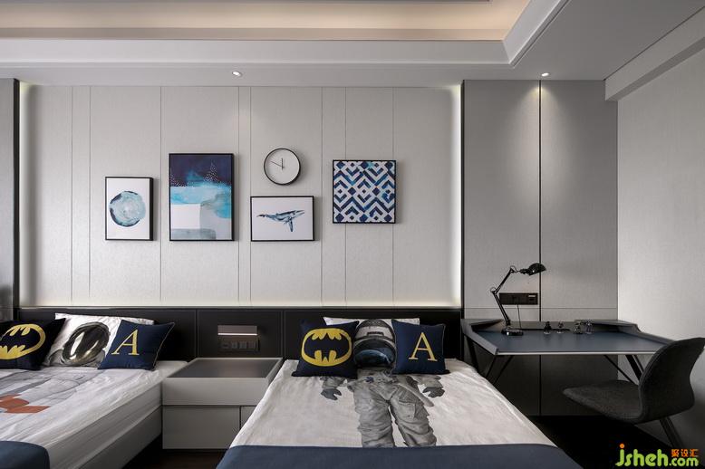 雙床房當然是更大可能的滿足居住需求,各式藍色掛畫、桌椅和抱枕,彼此呼應,打造出平靜舒適的休息環(huán)境