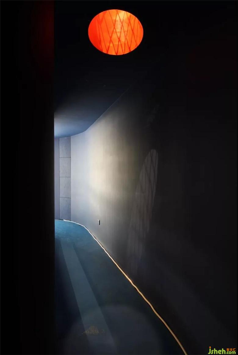 于是設(shè)計(jì)師為空間設(shè)計(jì)了兩條交通動(dòng)線,一條是公司LOGO、文化展示的平凡之路,一條是擁有神秘氣質(zhì)的深空隧道。在深藍(lán)色隧道深處,有一個(gè)類似黑洞的紅色天窗直通二樓,為上下兩個(gè)空間的互動(dòng)增添了些許趣味。不同的人們,進(jìn)入空間的感受是不一樣的。深諳世事的大人們喜歡走平凡之路,充滿童真的孩子們喜歡走深空隧道,去探索未知的世界。