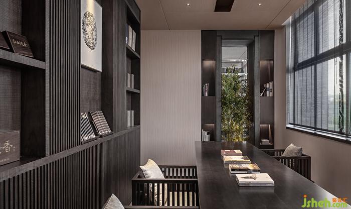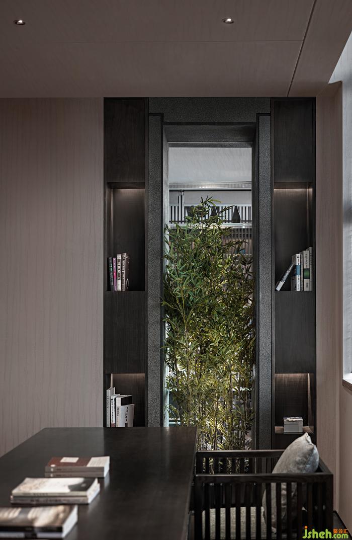 回到《思源書館》空間,“移竹當(dāng)窗,分梨為院”園林手法與《雅談閣》來隔斷。溶溶月色,瑟瑟風(fēng)聲,格柵式的窗簾透過光,疏影橫斜 而入,會(huì)所裝修設(shè)計(jì)映照在書桌上, “光”的生機(jī)主義娓娓道來。拿起書本閱讀,彷佛處于山居般讀書生活場景。