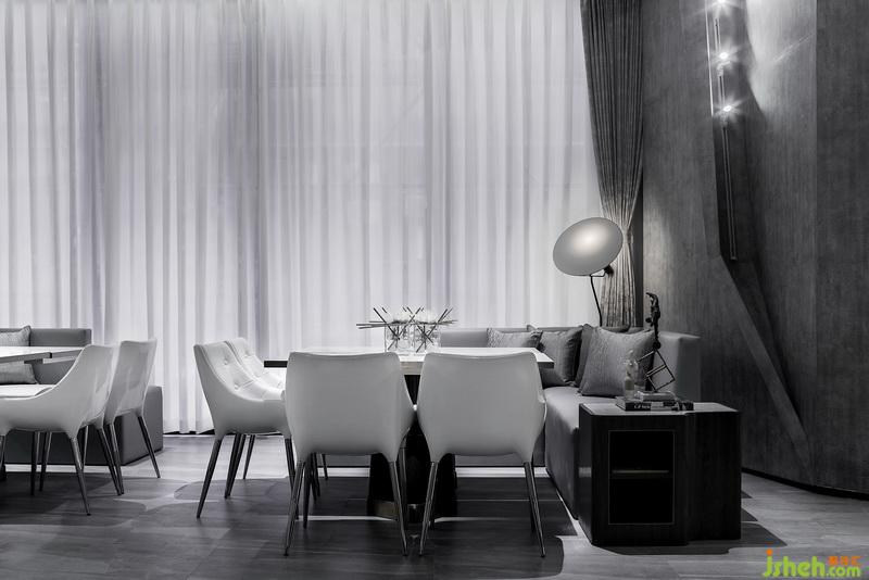 整個空間的線條猶如行云流水般舒張自如,統(tǒng)一協(xié)調(diào)中又簡潔有力。空間室內(nèi)設(shè)計師利用多樣的座位配置來達(dá)到分區(qū)的效果,有不同方向的拼桌,借著桌體水平方向調(diào)整和多變座椅讓分區(qū)更明顯。落地窗的設(shè)置引入自然光線,聚餐區(qū)更顯開闊明亮。