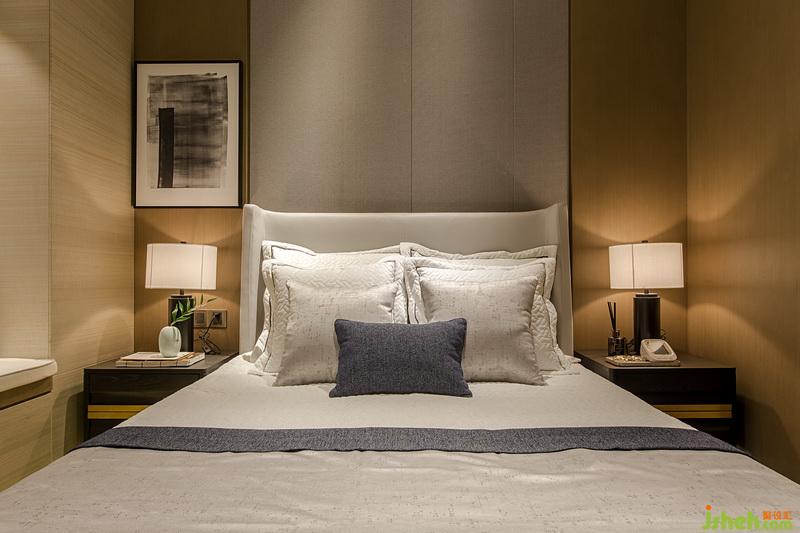 主臥的空間線條干凈簡潔,如澄瑩水色平流緩進(jìn),設(shè)計(jì)師再采用淡雅的色彩語言增添溫潤質(zhì)感,摒棄過于繁瑣的裝飾,以精美壁畫、造型不一的坐燈以及詩意陳設(shè)物品來讓整個(gè)空間顯得清靈雅致,又極具現(xiàn)代機(jī)能。