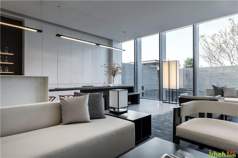 洽談區(qū)采用大面積落地玻璃,庭院之景,為空間增色,春夏秋冬,變?yōu)橐环噬嬜?,人立于室?nèi),與自然產(chǎn)生連接,心境也因此越過(guò)藩籬,感受純粹的安寧。