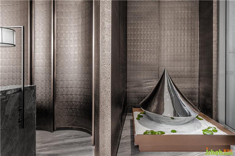 接待前廳是進(jìn)入空間的第一感受,東莞卓越悅山湖花園銷售中心設(shè)計(jì)接待前廳采用對(duì)稱的設(shè)計(jì)手法,結(jié)合金屬及不銹鋼的材質(zhì),勾勒出項(xiàng)目高貴奢華的氛圍,同時(shí)表現(xiàn)出秩序的力量,提升空間的尊貴感。