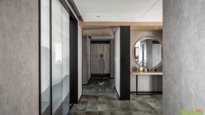 方案上,室內(nèi)設(shè)計(jì)師重新設(shè)計(jì)了原始進(jìn)門至客餐廳的動(dòng)線,強(qiáng)化了玄關(guān)的入戶儀式感。進(jìn)門半通透隔墻配合圓形,起到了移步換景,虛實(shí)結(jié)合的空間效果。并且分割出獨(dú)立的換鞋帽區(qū)域,以及環(huán)形通道區(qū)域。
