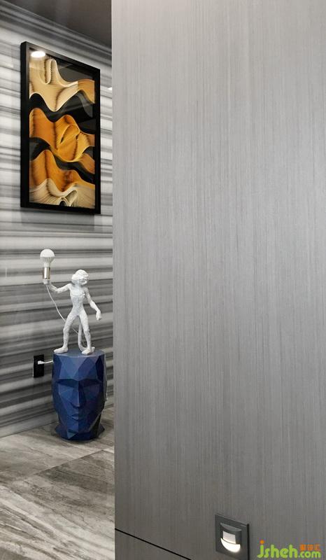 ☉設(shè)計材料:成品木飾面 拋釉磚 墻布 硬包 黑板漆 定制木作(柜門 房門)