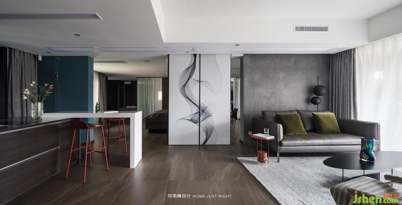 室內(nèi)設(shè)計(jì)師設(shè)計(jì)核心,以入戶隔斷為界,空間布局環(huán)繞中心隔斷展開,虛與實(shí),打破固有的空間結(jié)構(gòu)模式,形成新的分隔。