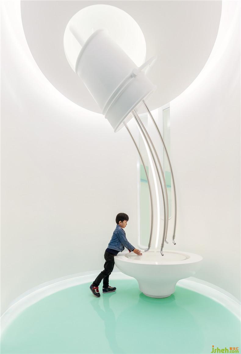 洗手間內(nèi)的大水筒令洗手也變得有樂趣,整個空間讓小孩發(fā)展創(chuàng)想力并通過身體、感官、語言和肢體學習以提升個人與團體協(xié)作的能力。