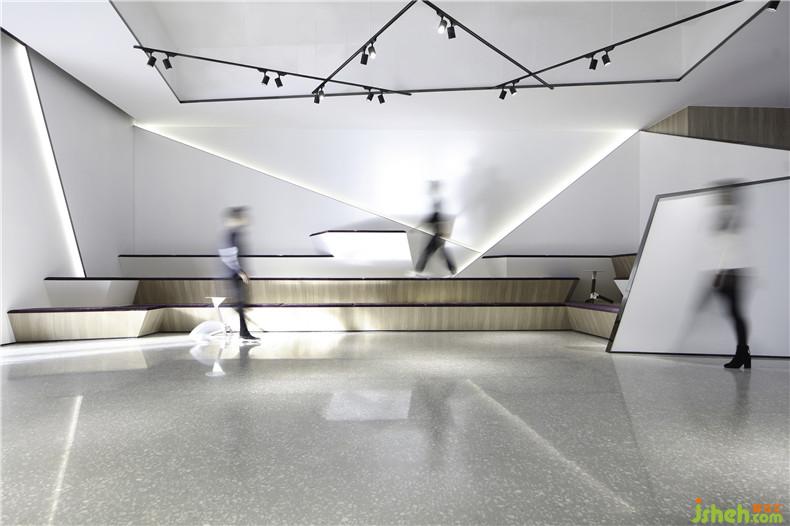 室內(nèi)空間與建筑元素情境而生,幾何視覺透過線面構(gòu)成,天花射燈如同舞臺軌道燈,形成不同的層次豐富視覺。三角切面及天窗構(gòu)筑為特殊來賓而打造的走廊,甫進大堂兩側(cè)是多層次的座位,以光線展現(xiàn)線條,開放的互動區(qū)減輕工作的疲憊,更增加員工間的交流機會,中間是偌大的多用途空間,無論是內(nèi)部團隊或是影視活動都提供靈活性及自由度。室內(nèi)設(shè)計師