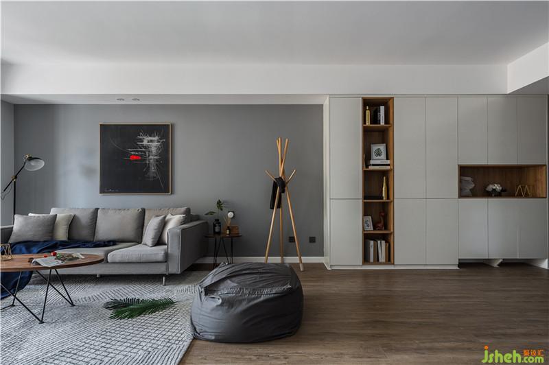 本案以淺灰色系為主,不同明度的灰色系列加以運(yùn)用,給空間無(wú)限遐想,給人心神寧?kù)o之美,便于人在空間里面的獨(dú)立思考。設(shè)計(jì)舍去繁雜的造型裝飾,在原本功能構(gòu)建上面考慮設(shè)計(jì),盡可能塑造功能美學(xué)?,F(xiàn)代簡(jiǎn)潔的白色木質(zhì)柜子,配以自然溫馨的木質(zhì)門(mén)板,稍顯粗礦的電視臺(tái)板餐桌臺(tái)面茶幾及邊幾,都是樸素、自然、親近的美好。自然材質(zhì)和現(xiàn)代藝術(shù)的組合,給整個(gè)空間形成了巧妙的和諧,加以鐵藝元素的點(diǎn)贊,給整個(gè)空間帶來(lái)趣味感。室內(nèi)設(shè)計(jì)師