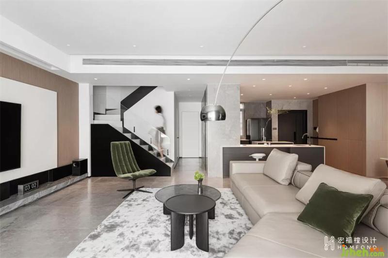 在形成秩序的同時(shí),也賦予空間絕對(duì)的廣闊性?,F(xiàn)代與生活經(jīng)過(guò)融合思考,藝術(shù)也囊括進(jìn)入其中,空間中垂直的對(duì)稱、縱深的弧線,形成屬于這間居所的獨(dú)特語(yǔ)言。