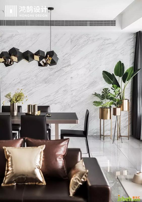 大理石上墻,讓整個就餐環(huán)境變得通透,個性化的形狀吊燈,搭配暖色光線,讓就餐風味變得濃厚。