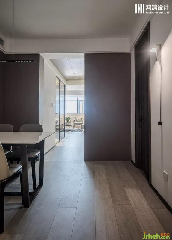充足收納,滿足三代同堂的需求三室兩廳的格局,入住三代同堂,儲(chǔ)物空間一定要多。業(yè)主也是希望家里的東西“都可以藏起來”。所以在餐廳靠近門口的位置,室內(nèi)設(shè)計(jì)師設(shè)計(jì)了一個(gè)大的儲(chǔ)物間,基本可以存儲(chǔ)家里的所有雜物。柜門采用木飾面板,做成隱形門裝置,不占用外部空間,又顯得簡(jiǎn)潔美觀。設(shè)計(jì)師順勢(shì)在另一邊設(shè)計(jì)了同樣的木飾面裝飾,左右對(duì)稱。