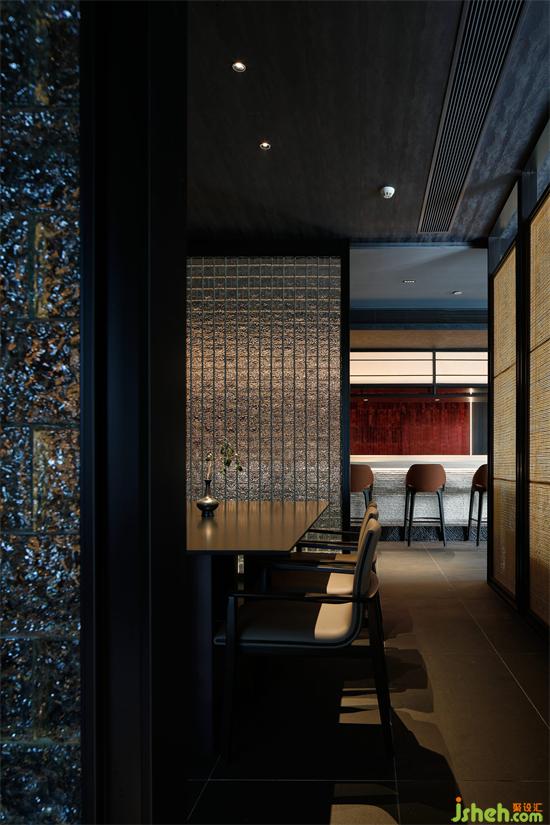在空間材質(zhì)的選擇上,日料餐廳設(shè)計師融合料理文化和對于空間想表達(dá)的哲學(xué)感悟,對質(zhì)感精細(xì)的把控,希望把匠心體現(xiàn)在空間的每一細(xì)微之處,讓所有在這個空間中享用美食的食客們,都能摒除雜念,心無旁騖。忠于味蕾,方能品味最原始的愉悅。