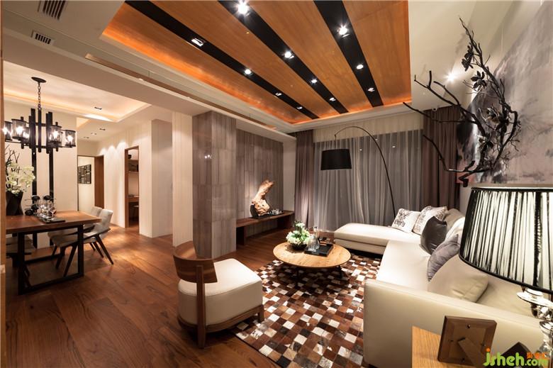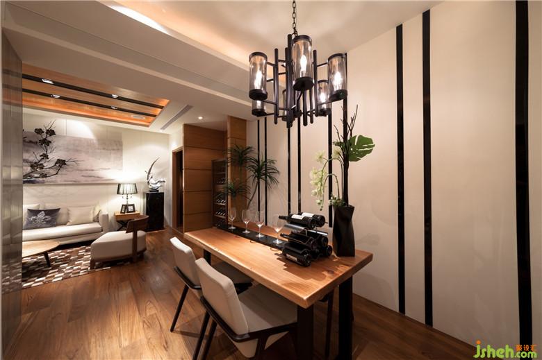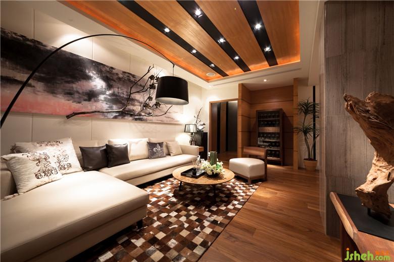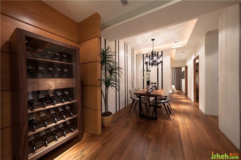 本案為住宅空間,并以木質(zhì)作為空間主要用材,場域之間以白色和木色來界分,并將廚房獨立出來,和公領(lǐng)域區(qū)隔,空間中大量使用木質(zhì)媒材,由外鋪陳入內(nèi),除了給人穩(wěn)定的力量之外,更顯得沉穩(wěn)大器。沙發(fā)背墻上暈染的水墨畫,為客廳帶來些許東方氣息,讓整體木質(zhì)空間更形沉穩(wěn),將角度移至黑色天花,線板營造空間強(qiáng)烈的視感,為客廳場域帶來視覺焦點,線條區(qū)隔陣列于餐廳和走道壁面,將黑與白揉合至完美。走道軸線上,木色門框點綴了白空間,輕氛圍有別于客廳的沉穩(wěn)。
