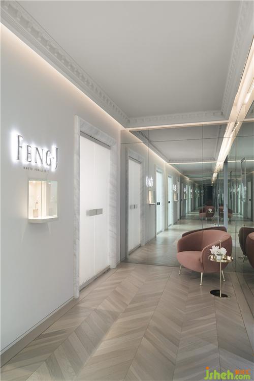 在軟飾的選擇上也是精心的珠寶店鋪裝修設(shè)計,頂面白色線條藝術(shù)燈搭配浮雕石膏線精致感,細(xì)節(jié)的烘托下潔白無瑕的窗簾上絲絲柔和的光影,一切都顯得唯美又浪漫。