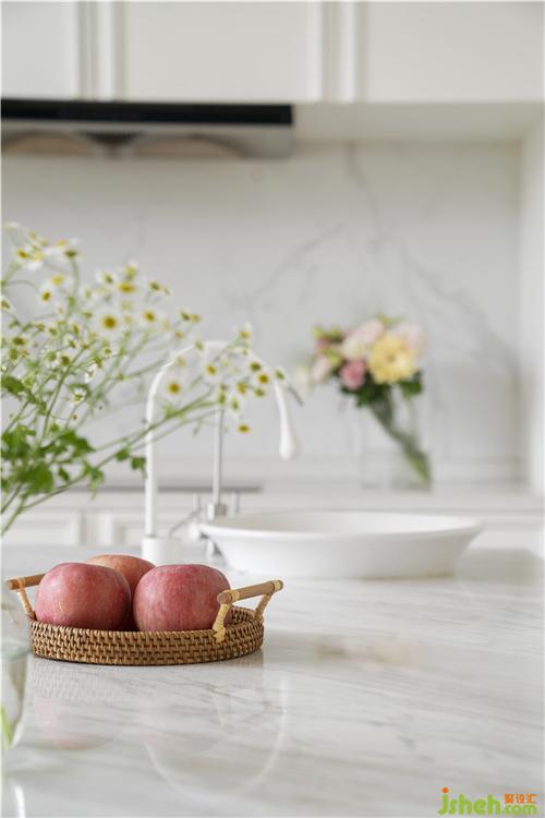 中式廚房在一層的角落,而西廚區(qū)和小茶室則位于開敞的大客廳內(nèi)。西廚的中島很適合一家人圍坐在一起,其樂融融。背后是功能性滿滿的儲(chǔ)物空間。