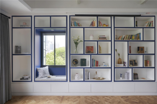而原來的露臺空間也被打造成了室內(nèi)的一個休閑閱讀角,無論是功能形式還是利用價值上,都體現(xiàn)了設(shè)計的巧妙之處。