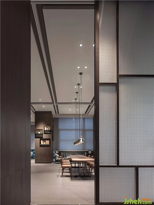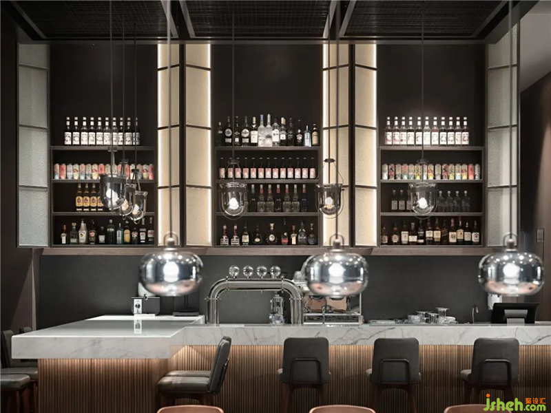 空間以情緒及的’動(dòng)靜”感受來(lái)劃分,整體空間多元復(fù)合化,滿足差旅,度假,社交,商談等多元功能,配合冷調(diào)的爵士樂(lè),這里可以創(chuàng)造一切可能。