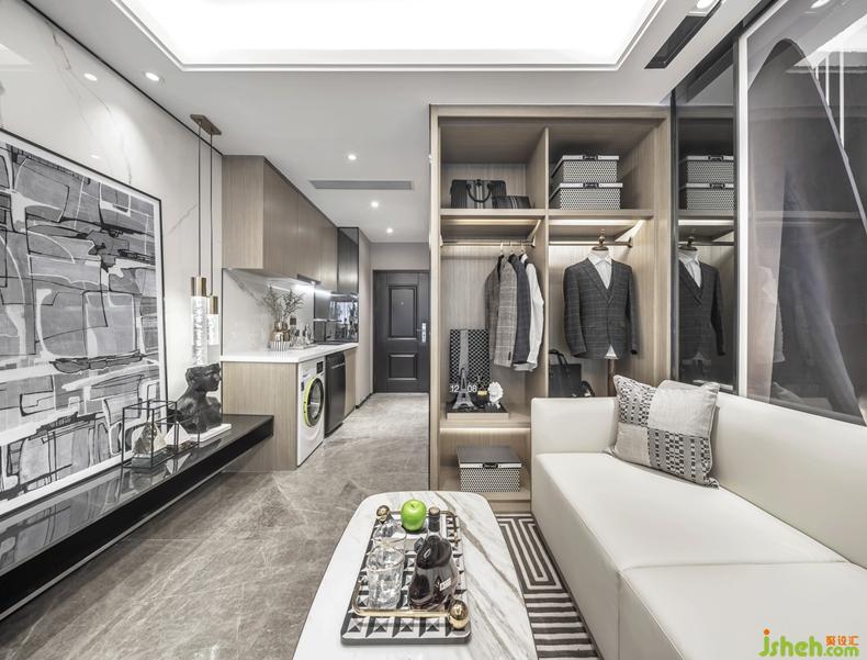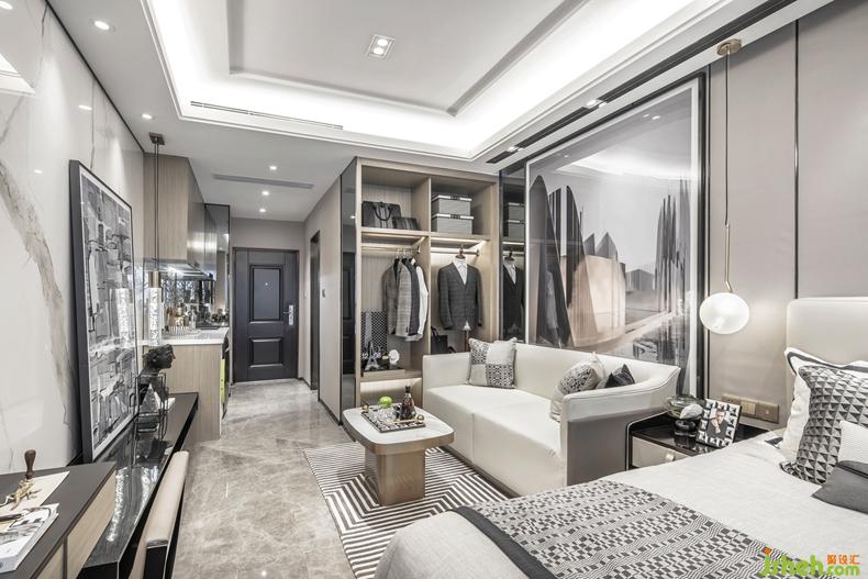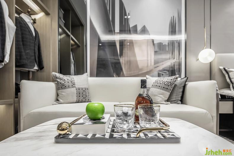 在這里,室內(nèi)設(shè)計師將質(zhì)感、思維幾何、科技感與輕奢主義從人物角度蔓延至空間中,為躋身于金融行業(yè)的30歲成功男性定義生活品質(zhì)。他注重搭配穿著、酷愛高奢高定系列,對自己的生活有非常嚴謹?shù)囊蠛蛻B(tài)度,而行業(yè)屬性也促使他更關(guān)注細節(jié)。