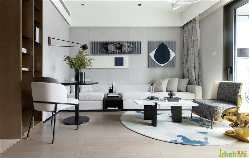 淺色系沙發(fā)、地毯搭配別致的裝飾畫(huà)和鎏金藝術(shù)品,豐盈著空間氣質(zhì)。