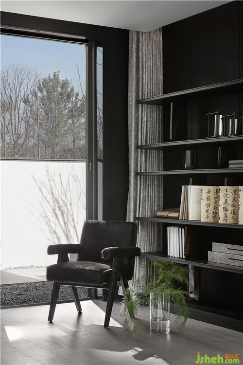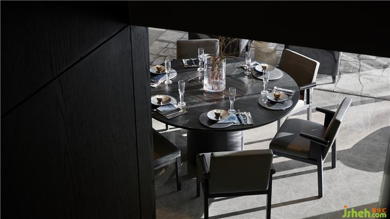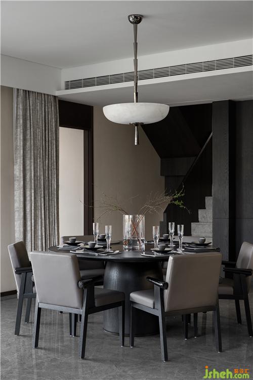 一層空間以圍繞家人們社交與共享為主,尺度開闊的客、餐廳與書房隔而不離,皆由一面通透的玻璃窗與室外花園的自然光景關聯(lián)。石、木,和綠葉上的光影,成都別墅裝飾以圍繞人們生活的姿態(tài)自然生發(fā)。