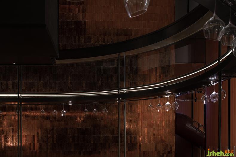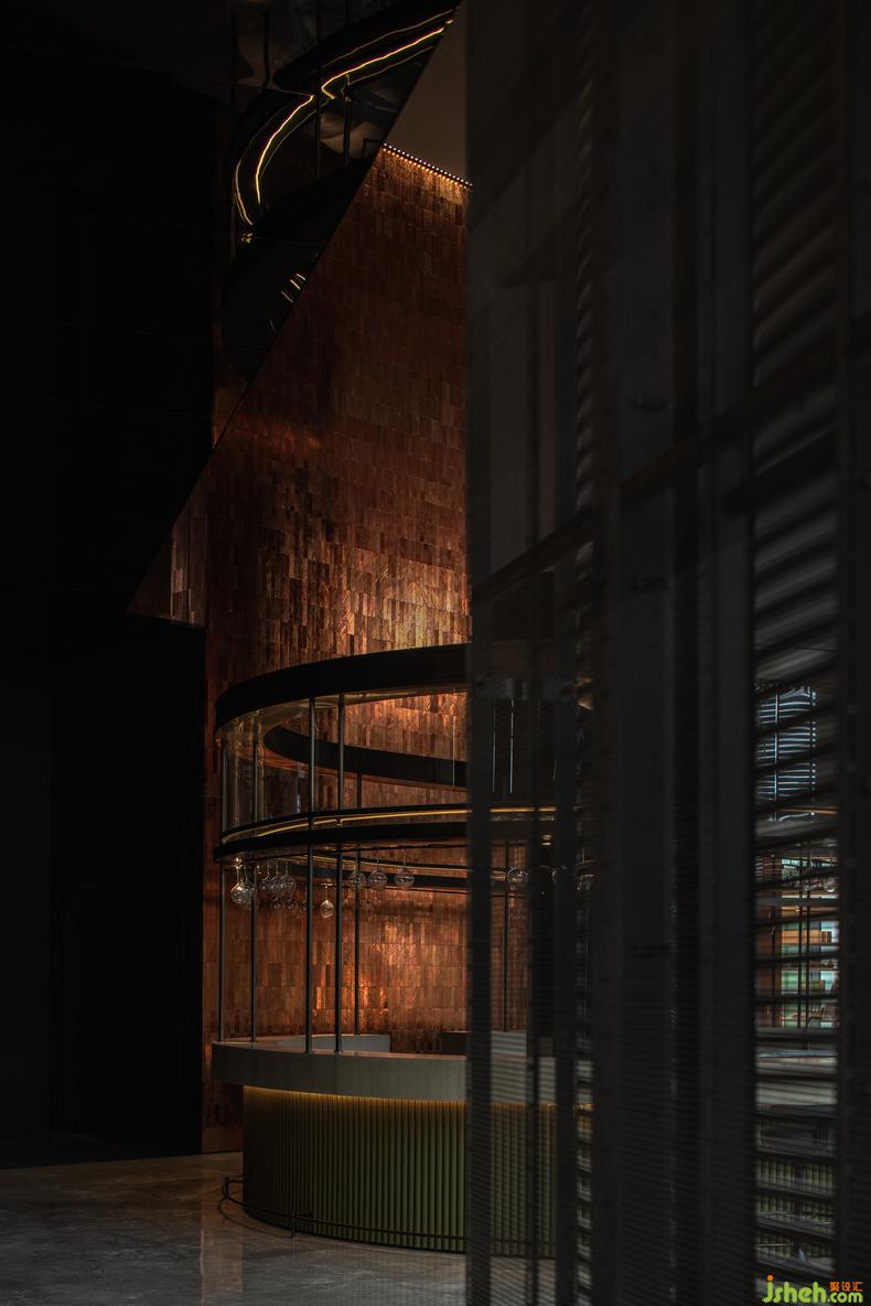 金屬磚的冷冽與華貴,提煉自極富代表性的西安古城墻元素,銷售中心設(shè)計(jì)通過現(xiàn)代性裝飾語言的轉(zhuǎn)化,回應(yīng)了空間應(yīng)有的厚度與質(zhì)感。一側(cè)玻璃磚的清透松弛與其對(duì)望映襯,一面輕緩、一面醇厚,在鏡面的折返中,整個(gè)墻體立面的自上而下跨越,拉開了空間宏大、巍然而細(xì)膩、微暗的序章。