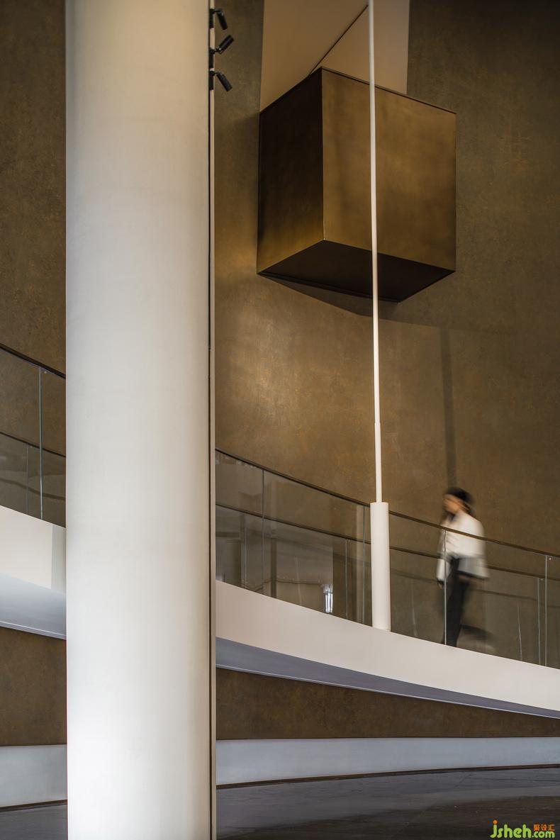 除此之外,便是結(jié)構(gòu)上的精妙所帶來的直接、沖擊式的宏大感受。順著回旋式樓梯爬升,球體在移動中不斷映射出人行進的朦朧姿態(tài),在空間形式的內(nèi)部聚焦,在真實體驗的外部拓展。