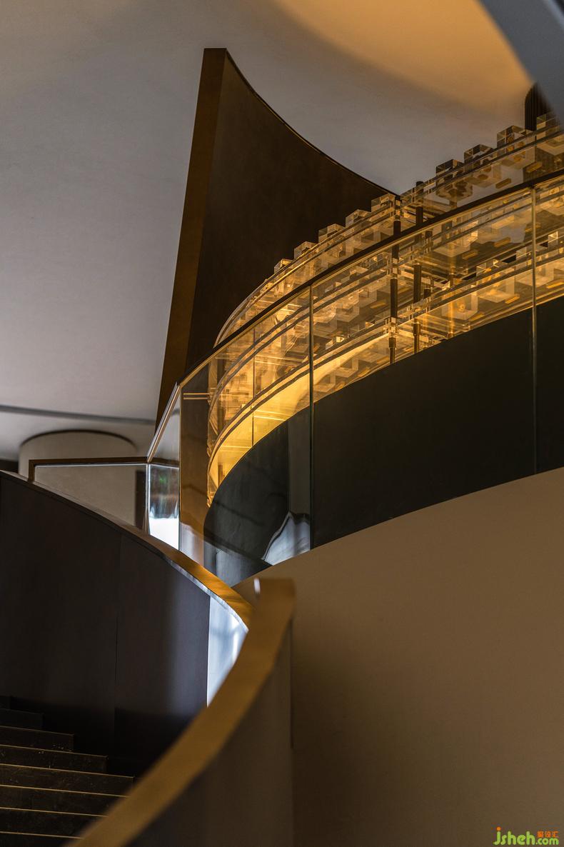 延續(xù)著空間回旋式壁面的構(gòu)造語言,在二層空間的打造中,室內(nèi)設(shè)計師設(shè)計以尺度較小的回旋式空間排布了如同漫游艙式的多個獨立功能空間,打造沉浸式的書吧、博物館等。