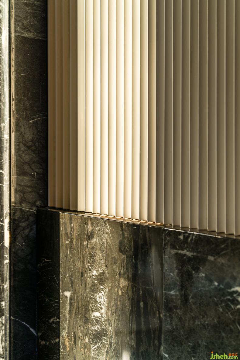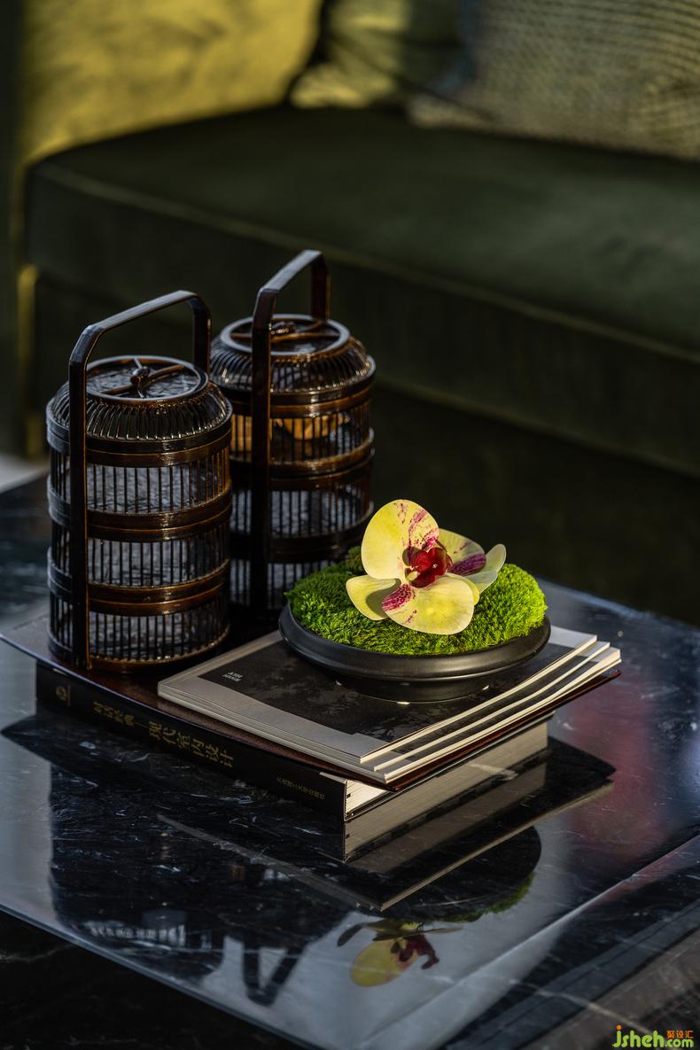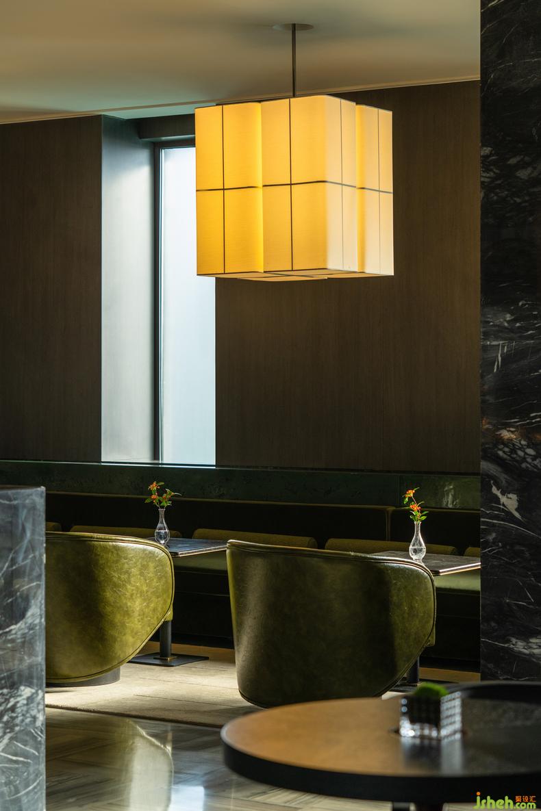 復(fù)古的綠調(diào),與天然大理石漫漶的紋理營(yíng)造的“暗面”,令空間不斷消隱、下沉,將顯于形的器物與光影表達(dá),帶入人們視線與感受的中心。