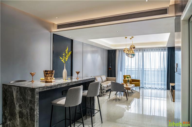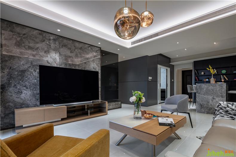 墨色大理石、金屬燈飾呼應(yīng)著灰色的大基調(diào),同時(shí),讓空間簡(jiǎn)約優(yōu)雅而不失清新率真感。室內(nèi)設(shè)計(jì)師