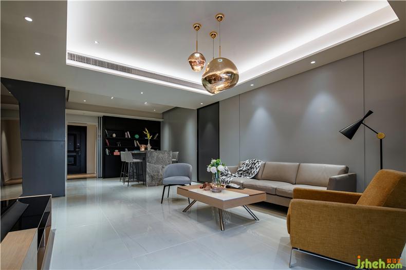 With a piece of translucent gray glass, the living room adds some Oriental design charm without losing the "foreign air" of young people