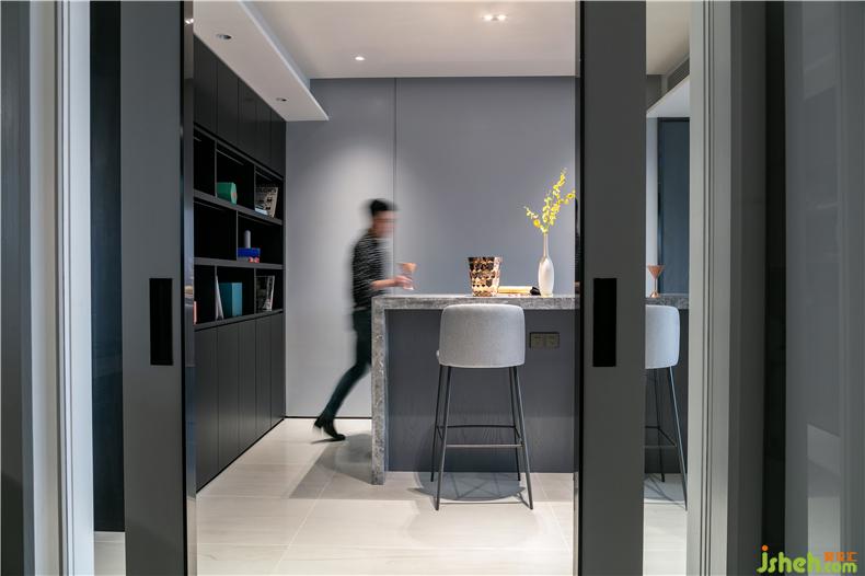 拉門是餐吧和廚房友誼的關(guān)鍵橋梁。當(dāng)“硝煙”開始彌漫,兩扇拉門成功阻斷煙火氣。室內(nèi)設(shè)計(jì)師