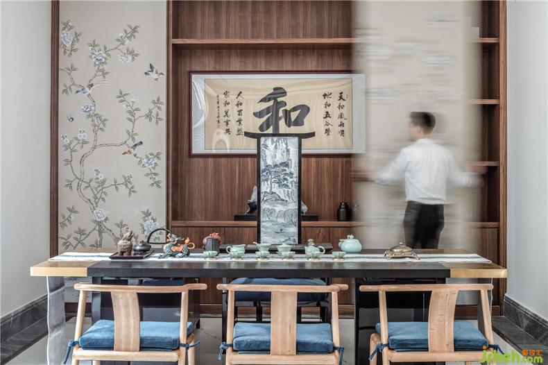 The collision of traditional Chinese round table and hanging table lamp creates a comfortable and complacent picture, which combines modern elements with traditional elements, and adds a flavor to each other.