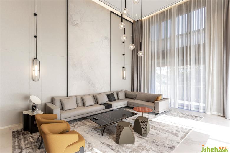 在整個空間中顏色使用暖色系,使整個空間更加的具有生活氣息,少量使用愛馬仕橙的顏色點綴空間,使空間給人的感覺更加的活躍,也使空間具有個性和溫度。