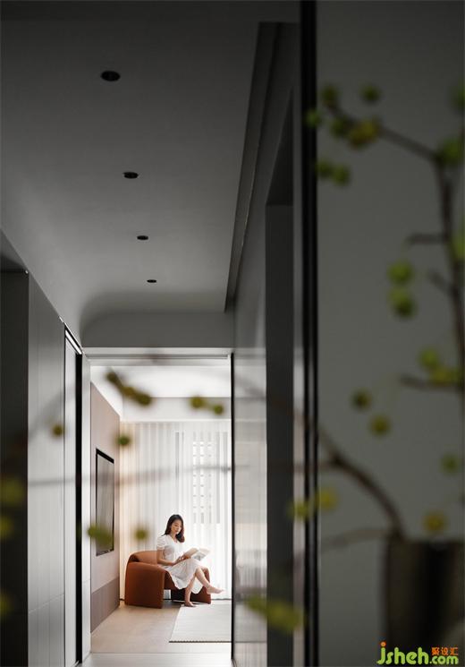 臥室以精致而低調(diào)的品質(zhì)感,隱喻內(nèi)在從秩序、舒適到自在的柔和轉(zhuǎn)變。讓居者得以在千頭萬(wàn)緒的都市生活中,把握身心平和融洽的天秤。